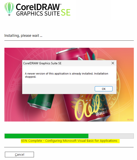 Während der Installation von CorelDrawSE erscheint ein Popup-Fenster mit der folgenden Meldung: